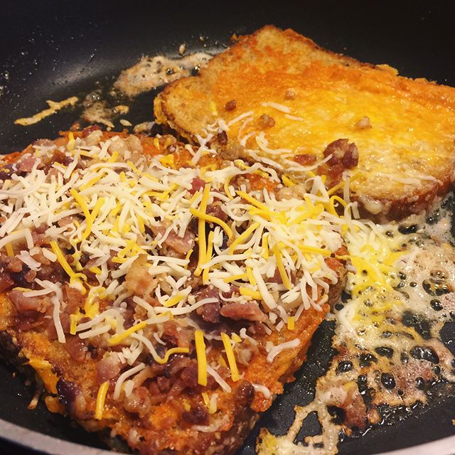 It’s a crispy, buttery, grilled cheese with bacon bits kinda day. Not pictured: tomato soup! #lunch